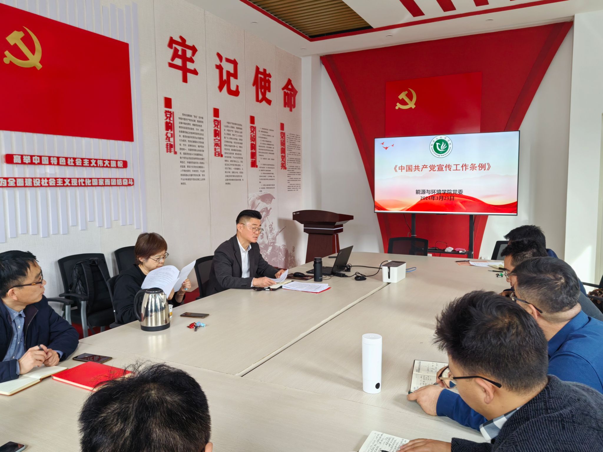 会议指出,《中国共产党宣传工作条例》为做好新时代宣传工作提供了基本遵循。要深刻认识《条例》的重大意义,切实提高政治站位,树牢“四个意识”,坚定“四个自信”,坚决做到“两个维护”,各系室、党支部要把学习贯彻《条例》作为一项重要政治任务抓实抓好,确保《条例》各项规定落实落地。要以《条例》为指引,紧紧围绕宣传思想工作的使命任务,坚持不懈做好新时代党的宣传思想工作。要聚焦使命任务,坚持立德树人,努力培养担当民族复兴大任的社会主义建设者和接班人。