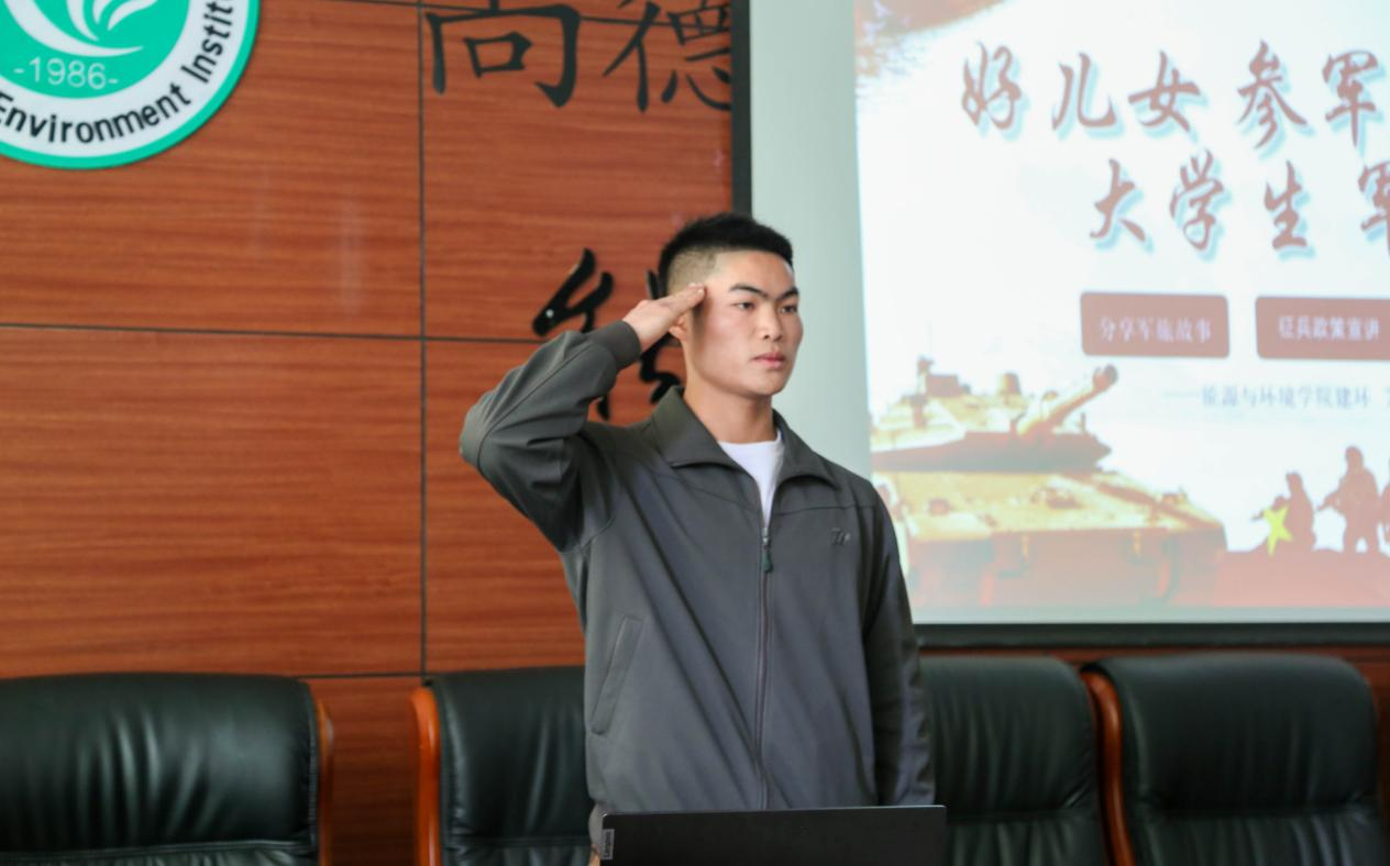 本次讲座特邀建环21-3班优秀退役老员工艾永前同学做讲座,他曾服役于武警福建总队漳州支队,服役期间参过过抗洪抢险,武装押运,地方暴恐维稳,高校军训,山区儿童扶贫等任务。他在各种任务中表现出色,获得优秀新兵,四有优秀士兵,嘉奖各一次。