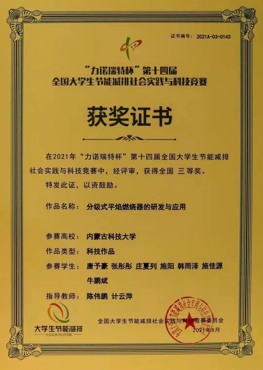 本届竞赛中,公司太阳成tyc7111cc唐予豪等同学的作品《一种分级式平焰燃烧器的研发与应用》、刘嘉晨等同学的作品《超静音无风空调舒适系统》、机械工程公司杨统勋等同学的作品《智能垃圾分类装置》、刘延振等同学的作品《烟气处理系统》、康寿臻等同学的作品《基于物联网+的智能光伏板清扫机》荣获了全国三等奖。