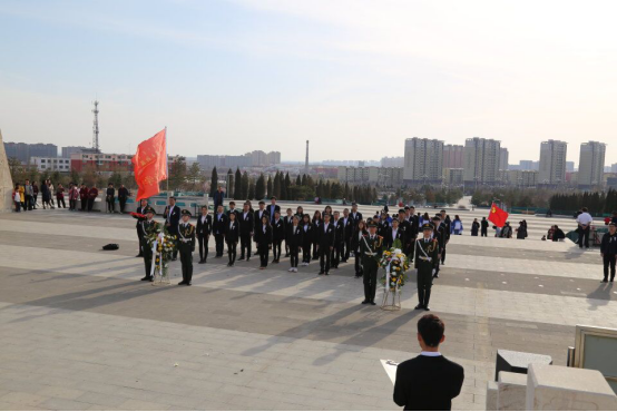 活动伊始,全体奏唱《中华人民共和国国歌》。高昂的歌声,唱出了革命先烈们为了民族的解放和人民的幸福在枪林弹雨中浴血奋战的壮丽篇章。随后,同学们在工作人员的带领下倾听了包头烈士陵园介绍。同时四名国旗护卫队队员为烈士们敬献花篮。朵朵鲜花寄托着我们的哀思,代表着我们对革命先烈的敬仰。