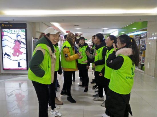 在拼图任务环节,队员们需要在商场里通过与商家对暗号、找线索等方式搜寻隐藏在商场中的“我的肩膀--能挑多重的担子”、“聚能环·正青春”等字样碎片以及团徽碎片并完成碎片上相对应的挑战任务。