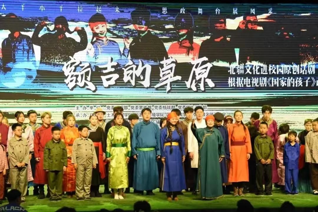 ▲公司原创话剧《额吉的草原》献礼北疆文化进校园