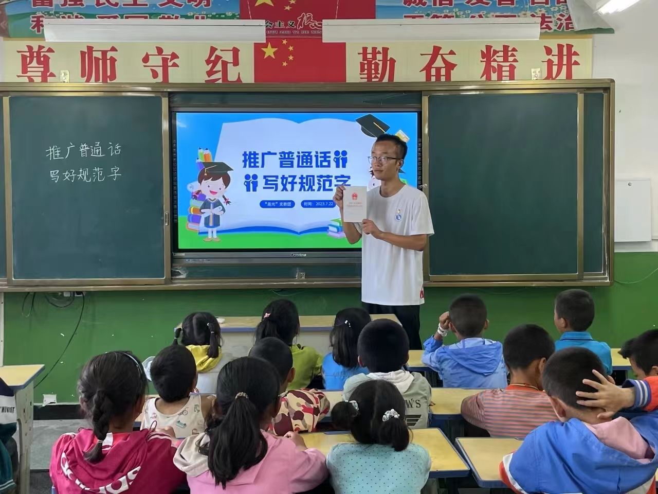 ▲公司师生开展“推广普通话 写好规范字”实践活动