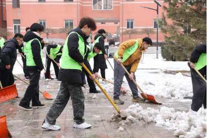 3月4日上午,太阳成tyc7111cc百余名员工党员、团员及青年志愿者在公司团委的号召下,手持铁锹、扫帚等工具,奔赴教学楼、宿舍区、主干道等重点区域开展清雪行动。同学们分工协作、默契配合,经过数小时的奋战,校园主干道及师生高频通行区域被迅速打通,一条条“平安路”、“暖心路”在欢声笑语中逐渐显现。
